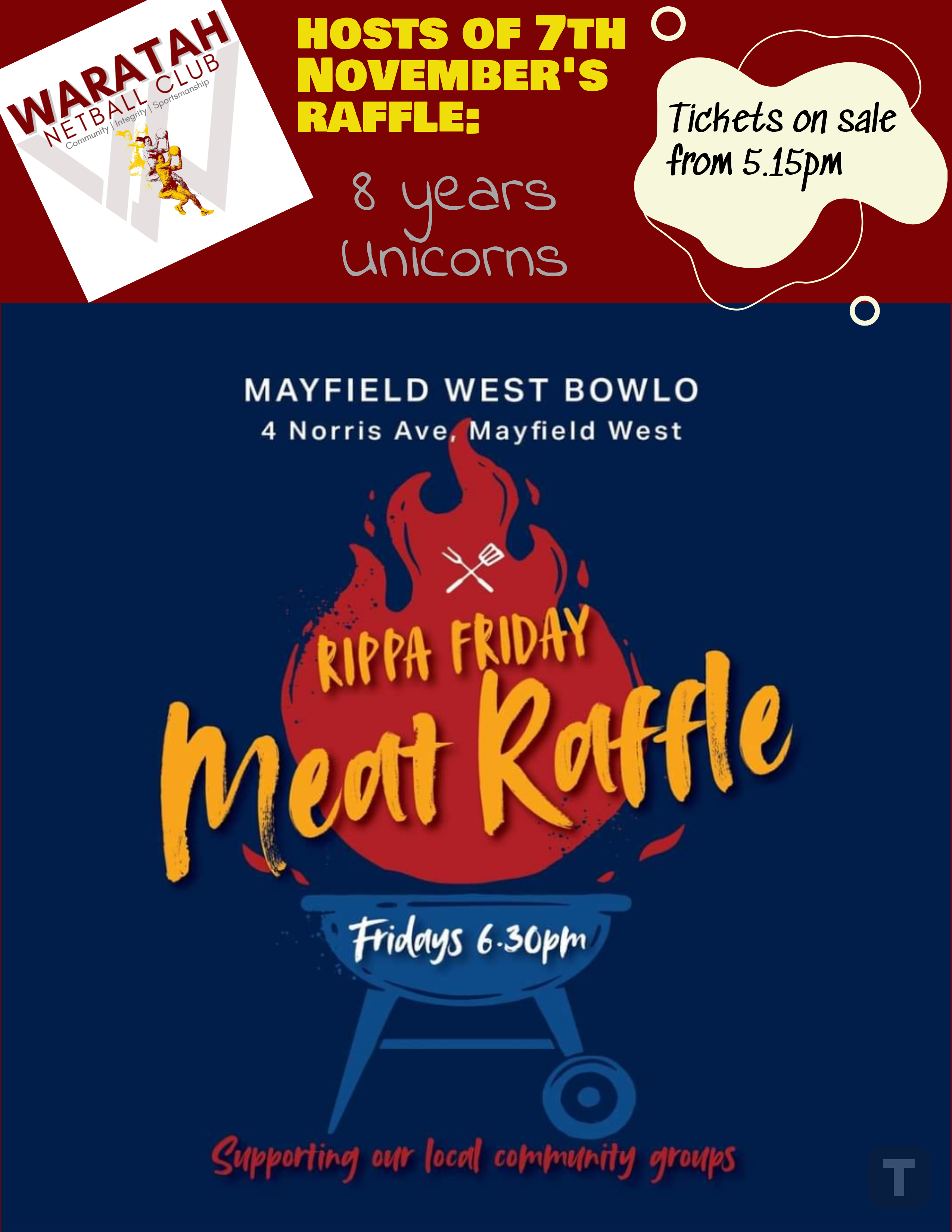 Join us for our monthly raffles at May West Bowlo, this month hosted by our senior 8 years Unicorns! The funds raised from ticket sales goes directly back to Waratah, which reduces our fundraising requirements throughout the year. Come along and support us, be in the chance to win some great prizes, and have some dinner and drinks whilst you are there socialising!